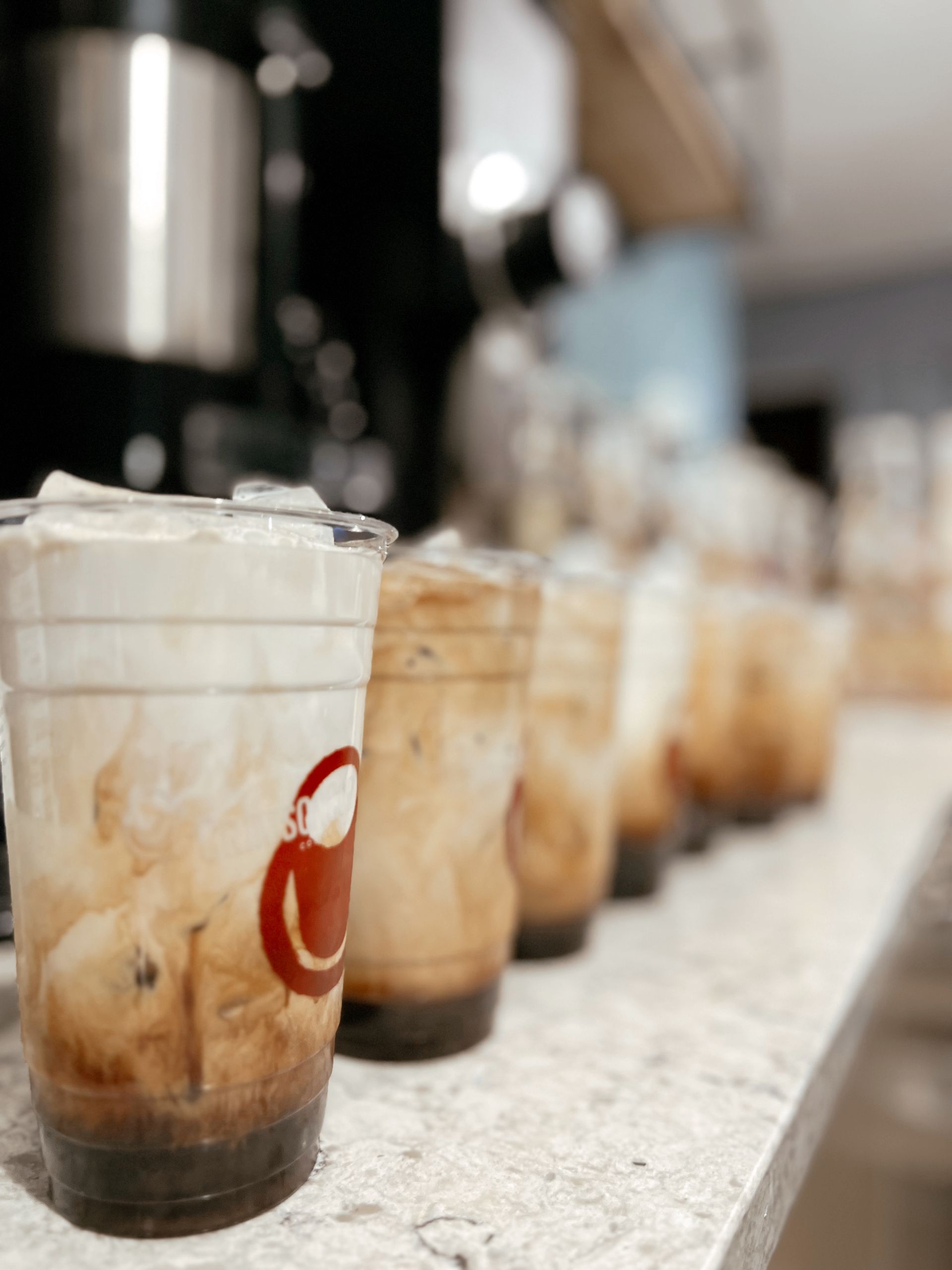 "5 star review from a nitro brew coffee snob. For one THE SIZE. Biggest you can get anywhere in the area- also the foam amount- ON POINT. Atmosphere 10/10, Service 10/10. These girls were HAPPY to be here and that is so rare. Def my new coffee spot <3